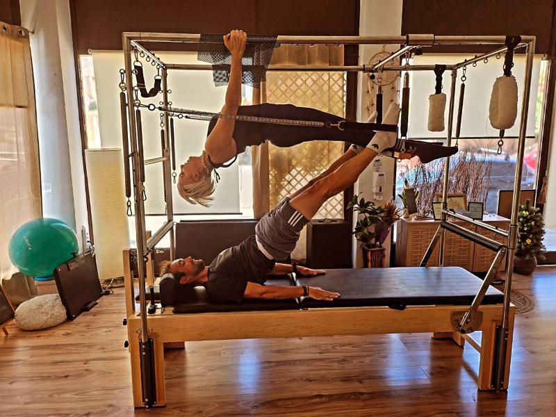 Pilates Cadillac: Σταθερό πλαίσιο με μπάρες και ελατήρια, ιδανικό για πιο εξειδικευμένες ασκήσεις ευλυγισίας και ενδυνάμωσης.