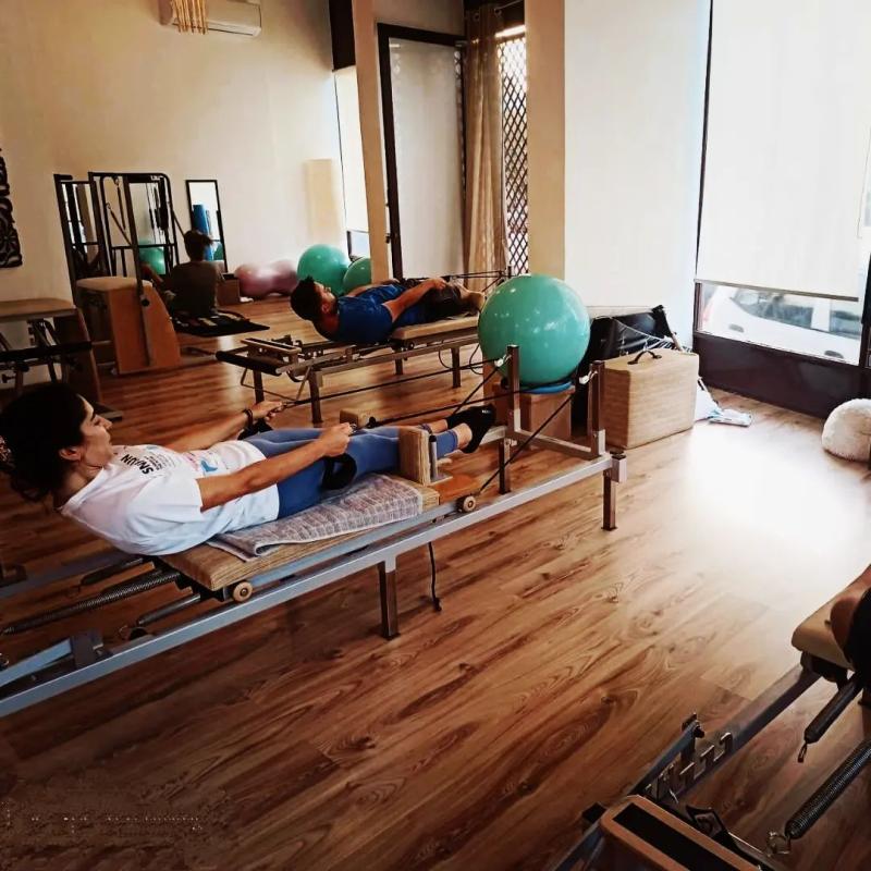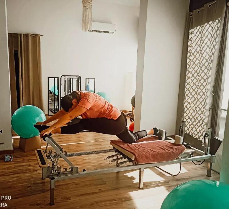Pilates Reformer: Κινούμενη πλατφόρμα με ελατήρια που προσφέρει αντίσταση και επιτρέπει μεγάλη ποικιλία ασκήσεων για ολόκληρο το σώμα.